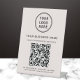 Modern professional pink table top pedestal sign for your business with your QR code for customers to scan for payment, to see a list of your products, services and prices, for appointments, to register, etc. Upload your logo and QR code and add your business name, phone number, street address or other information in simple typography.