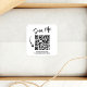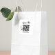 This design features a white simple sticker, with a QR code, great for promotional packaging, and perfect for any small business, with a simple create your own template, with a scan me, and arrow, it a minimalist, minimal style. With Scan me lettering and arrow.