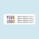 Save time by using printed custom business return address labels. Easily personalize them online with your own company logo and business return address. Including your logo adds promotional branding to every mail piece you send with the label. Available in three sizes: 0.75 x 2.25 inch (small), 1.25 x 2.375 inch (large), and 2 x 3.75 inch (extra large). Low minimum order quantity and no setup fee.