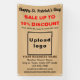 Happy Saint Patrick’s Day! Another holiday to celebrate this March and to advertise also your business or to promote your brand name. Green is always the color for this holiday but try also other colors. Customizable light brown banner with Saint Patrick Sale, your business name and other information. This might be the color that matches your business color scheme. Banner that you can use as marketing material to attract more customers. Customize it and display it to convince more customers to buy your products or clients to like your services. Contents are Happy Saint Patrick’s Day greeting, sale texts with percent discount that you will offer, sale dates, your business name, logo, address, phone number, e-mail and website or your business social media page. Please check the appearance after uploading logo and typing texts. If the appearance is pleasing to you, you can place your order now. If you need to resize and move the logo and texts to fit on this banner or on the size that you will choose, please change in the design tool. You can also change the background color, font color and font style in the design tool. Wishing you the best of luck, joy and more sales this holiday.