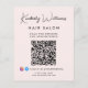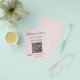 Chic light pink promotional flyer for your business featuring your name showcased in a stylish signature script and business type below in simple modern lettering. Input your website address to create a QR code for customers and clients to scan for appointments, products, services, hours, etc. Add your instagram and facebook handle for customers to follow you on social media.