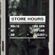 Window sign for store hours of operation. Personalize it with your shop's personal business hours.