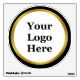 In the center, there's a display image. You can replace the display image with your business logo to make a custom decal for your company. The decal is white. A black and a faux (not foil) gold circle form the border on the decal.