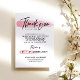 This design feature a black "thank you" in bold hand written script font agains a strokes of faux metallic pink (printed effect).