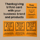 Happy Thanksgiving! Holiday to celebrate this November to thank for the blessings that we received. It is also one of the holidays to advertise your business. Trifold card with Thanksgiving greeting that you can customize to put your business name, products or services and other information of your business. Trifold card as brochure for your business. You can put up to three products or services. Customize it and use it to greet your customers or clients this Thanksgiving and as a marketing material to advertise your business and to promote your products or services. Design colors are black texts on orange color background. To customize this trifold card, upload your business logo and images of your products or services. Type also your business name, address, phone number, e-mail, website or your business social media page and short attractive description of your products or services. Please check the appearance on all sides after uploading images and typing texts. If the appearance is pleasing to you, you can place your order now. If you need to resize and move the images and texts to fit on this trifold card, please change in the design tool. You can also change the background color, font color and font style in the design tool. Advertise your business. Promote your brand name. Customizable trifold card that you can use to build brand name awareness. Happy Thanksgiving! Wishing you more sales this holiday season.