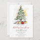 This business watercolor Christmas Tree Open House invitation with a gorgeous Christmas tree decorated with red and gold balls and with a sprinkling of brightly wrapped presents below would be perfect for inviting colleagues and customers to a holiday open house. The templates are super easy to use and in seconds you can see your fabulous invitations.