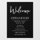 Business and Open Hours Company Window Cling Sign. Elegant Serif Fonts. Large type for easy reading. Easy to personalize for your own company needs.