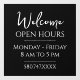 Business and Open Hours Company Window Cling Sign. Elegant Serif Fonts. Large type for easy reading. Easy to personalize for your own company needs.