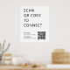 A simple poster white "SCAN QR CODE TO CONNECT". Simply scan the QR code with your smartphone to be taken to your desired social media page, community website, or networking platform. This poster is perfect for events, meetings, groups, organizations, and businesses. It's also a great way to provide your customers with free Wi-Fi access.