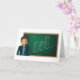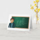 Send a message of success or encouragement with this professional cartoon businessman greeting card. The design features a friendly male presenter in a suit standing next to a chalkboard with a rising three-dimensional bar graph, symbolizing financial growth and positive progress. This versatile illustration is perfect for celebrating a new job, a major promotion, business milestones, or academic achievements. Whether you are a teacher looking for student rewards or a colleague congratulating a teammate on hitting sales goals, this clean and modern graphic makes a great impression. The chalkboard background provides a classic educational feel while the 3D chart adds a touch of modern corporate style. Customize the interior with your own personal message of congratulations or motivation for any professional occasion.