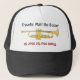 The hat features a trumpet on the front. There is a customizable message that you can personalize above the guitar. The text "Thank You For Your Tip" is printed below the guitar, upside down ( for a good reason - see below ).