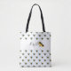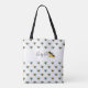 tote bag. Each design has a white band, with text that reads, “Busy Bee” and bee art. You can customize the text. These bags are great for errands, groceries, travel and they make great gifts