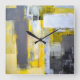 'Busy, Busy' Gray and Yellow Abstract Art Square Wall Clock