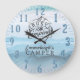 You might be a happy camper with this beautiful blue mountains with fog and sky design. With vintage, blue and white, enamel numerals, and templates for a monogram name and a subject, in this case "Camper".