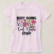 Nurse themed T-shirt with colorful medical supplies design features black text that reads Busy Doing Cool Nurse Stuff! Great for the nurse you know whether an RN, LPN, CNA, OB nurse, ER nurse, private nurse, student nurse, or nurse aide!