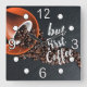 Clock. Coffee First. Makes a great accent piece for your kitchen, dining room, or a coffee shop or café. ⭐99% of my designs in my store are done in layers. This makes it easy for you to resize and move the graphics and text around so that it will fit each product perfectly. ⭐ (Please be sure to resize, change, add, delete or move any graphics or text if needed before ordering) You can also "TRANSFER DESIGN" on other Zazzle products and adjust the design to fit most of Zazzle items. (button is down on the right side of the page) Some of the text graphics have ready to fill in the box(es) or you can Click on the "CUSTOMIZE" button to add, move, delete, resize, background color or change any of the font or graphics. The design is made with high resolution vector and/or digital graphics for a professional print. ⭐NOTE: (THIS IS A PRINT. All Zazzle product designs are "prints" unless otherwise stated under "About This Product" area) The design will be printed EXACTLY like you see it on the screen and on the product...so please make sure when you do your changes on the resizing of any of the graphics or text that it fits in the areas correctly and that your spelling and wording is how you like it to be in size, color and font. If you have any questions about the "DESIGN ONLY" or need help please contact ME DIRECTLY at siggyscott@comcast.net or visit my store link: https://www.zazzle.com/store/designsbydonnasiggy (Copy and Paste) I'll be happy to help. ⭐ ALL OTHER QUESTIONS SUCH AS (shipping, refund, the printing being incorrect, the product itself, etc...) please contact Zazzle or the Maker ⭐DIRECTLY⭐. Thank you for the support and stopping by my store - DesignsbyDonnaSiggy. ⭐⭐⭐ ZAZZLE promises 100% satisfaction.