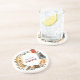 "But first, COFFEE" says the center of this fun drink coaster. The text, in gray and brown, is at the center of a wreath formed from coffee cups, coffee beans, and coffee related kitchen implements. Cute!