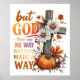 Peaceful, colorful design featuring a beautiful fall / autumn scene with a wooden cross, pumpkin and fall flowers. The colorful inspirational text reads: "But God. There was no way, but God made a way". This design is available on a wide variety of products.