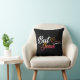 Black throw pillow with gold and pink ombre colored writing "But Jesus" with cross and heart design. Visual reminder that no matter what the circumstance, He is the reason why we know through faith everything will be ok!