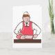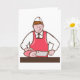 Being a butcher is an honourable profession and now you can show that with this great butcher design. This design of a butcher has him standing at a butchers block, apron on, cleaver in hand chopping up some meat. This butcher looks great on these greeting cards