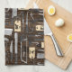 This butchers knives kitchen towel is with brown wood grain pattern all the knives and butchers tools pattern on top. There are tags with the different types of butchered animals, along with twin. You can make the pattern on this kitchen towel smaller or bigger.