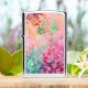 Original artwork by Bulgan Lumini (c) .Whimsical and artistic floral design with a magic butterfly plant in sparkling oriental swirls green blue,pink,yellow,purple colors and gold sparkles .Watercolor painting with golden and silver foil.
