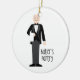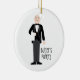 Lightweight, smooth, pure white ornament with nice sheen. Perfect size to be seen from across the room ... and to attract closer inspection! Price was great for ordering enough for the whole family! Clear, bold black design just as requested. Matches the order exactly. Just so nice!