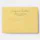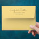 A trendy, butter yellow color mailing envelope for your wedding invitations and features your name and address printed on back flap in a black, modern script style. Personalize your envelope by editing and replacing name and address with your own. Edit further to change font style or color. Select your envelope size that fits your invitation.