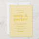 Beautiful butter yellow wedding invitations featuring bold, modern font pairings and shades of yellow. The back pops with a bright yellow to coordinate with the couple's names. The butter yellow will bring radiant warmth to your day. Perfect for couples seeking a blend of cheerful energy and refined elegance.