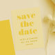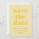 Beautiful butter yellow wedding save the date invitations featuring bold, modern font pairings and shades of yellow. The back pops with a bright yellow to coordinate with the bold save the date text on the front. The butter yellow will bring radiant warmth to your day. Perfect for couples seeking a blend of cheerful energy and refined elegance.