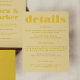 Beautiful butter yellow wedding details enclosure cards featuring bold, modern font pairings and shades of yellow. The back pops with a bright yellow to coordinate with the text on the front. The butter yellow will bring radiant warmth to your day. Perfect for couples seeking a blend of cheerful energy and refined elegance.