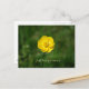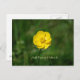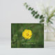This postcard features a single shiny, cheerful, yellow buttercup, Ranunculus, flower against a summery green background. Symbolically the buttercup is often associated with cheerfulness, charm, childishness and riches.