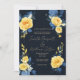 Buttercup yellow navy blue boho floral Wedding Invitation