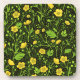 Buttercups on black beverage coaster