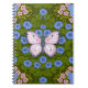Butterflies and flowers symmetry, blue and pink notebook