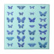 An array of speckled butterflies in shades of deep blue, on a pale turquoise background