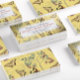 Elegant vintage botanical collage featuring swallowtail butterflies and catclaw acacia against a golden yellow background.