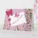 11” x 8.5” customizable thinking of you greeting card with an image of a white rectangle on a background of whimsical butterflies, green leaves, and pink sapphires. Blank inside. See the entire Kidz Korner Card & Invitation collection under the CARDS & STICKERS category in the KIDZ KORNER section.