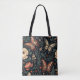 Three beautiful butterflies fly among flowers and leaves on this beautiful and stylish tote bag. Perfect for anyone who loves flowers, nature, and gardens.
