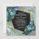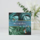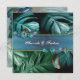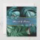 Nature springs to life in the new Butterfly of Paradise collection. Shimmering tropical splash in blues, turquoise and blue-green leaves on a textured black pattern with colorful butterflies Customization card designs combined with a geometric gold frame