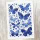Indigo blue and white watercolor butterfly painting. Blank for your own message.