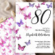 Butterfly 80th Birthday Invitation in Pink /Purple