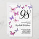 This pretty and whimsical 98th birthday invitation is perfect for a nice party and will set a fun and celebratory tone. This design features pink and purple butterflies, and is a nice feminine choice for a special event to celebrate a milestone birthday. Customize for your own birthday year, and search for "98" in my shop to see coordinating designs.