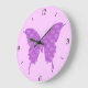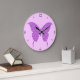 Butterfly, abstract pattern, lavender and purple large clock