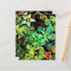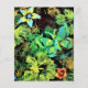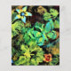 Flowers, a butterfly and leaves are glowing in this colorful painting that has been digitally altered.