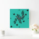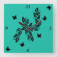 Butterfly and Ivy Leaves on Green Square Wall Clock
