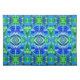 Placemat in a a digital batik pattern of large butterflies on an ornate, arabesque medallion background, in shades of cobalt blue, turquoise and jade green