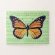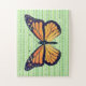 My original digital artwork is on this simple but slightly challenging and pretty puzzle. It is featuring a reworked vintage stripe pattern in green tones with retro illustrated monarch butterfly, designed for young children. The size of this fun puzzle is 11” x 14”, with 30 oversized pieces. You may size up with more pieces for more of a challenge or size down as desired.