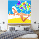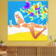 Exotic white haired girl laying on the beach with her tropical drink, butterflies flutter over her. -contemporary in style and fun to admire - Perfect for office , home or lobby. Can easily be sized down -