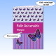 A modern birthday card design in Portuguese ready for you to personalize with your own text and the name of the recipient. The color scheme is pink, lilac and blue, and there are coordinating butterflies and stripes patterns on the front. Inside, there is a single butterfly on one side, and a delicate pattern of scattered hearts on a pale pink background on the other. Type in the boxes to change the greeting on the front "Feliz Aniversário" (="Happy Birthday") and the name.